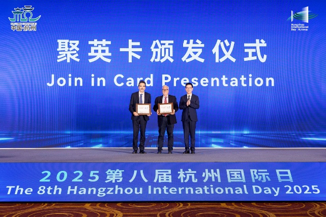 At the event, Zhang Dengfeng, Deputy Mayor of Hangzhou and Party Secretary of the Hangzhou High-Tech Zone (Binjiang), presented the "Join in Card" to Frédéric Genty. The card embodies Hangzhou's invitation to international talents. It integrates foreign work permit information into the social security card, enabling "one-card access" for work and daily services covering identity verification, banking, medical insurance, public transport, and discounts for cultural and tourist activities. Frédéric Genty is the first foreign expert in Hangzhou to receive the card.
