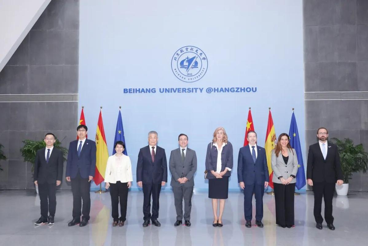 Other attendees included Marta Betanzos Roig, Ambassador of Spain to China; Luis Antonio Calvo Castaño, Spain's Consul General in Shanghai; María Esther Gómez Martín, Secretary General of the Education Department of the Valencian Community; José Esteban Capilla Romá, President of the Polytechnic University of Valencia (UPV); Jose F. Monserrat, Vice President of UPV; Chen Ping, Deputy Secretary of the Education Working Committee of the Hangzhou Municipal Party Committee and Deputy Secretary of the Party Leadership Group of the Hangzhou Municipal Education Bureau; Luo Jianqiang, Deputy District Mayor of Yuhang District; Zhao Weisheng, Vice President of Beihang University, and faculty and student representatives. The meeting was chaired by Zhao Weisheng.
