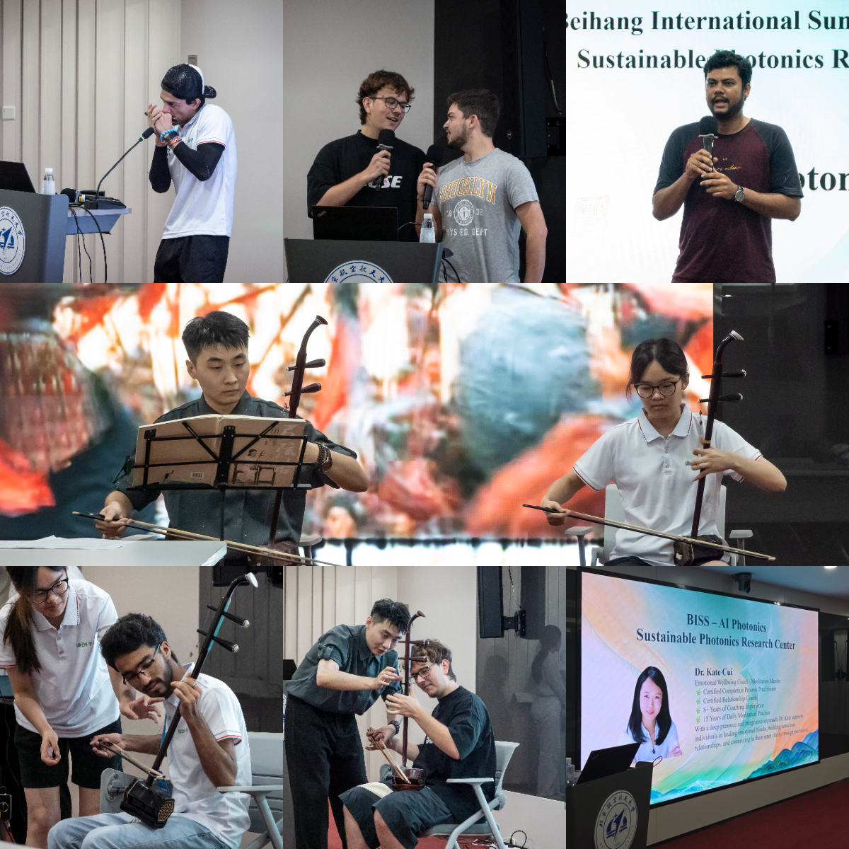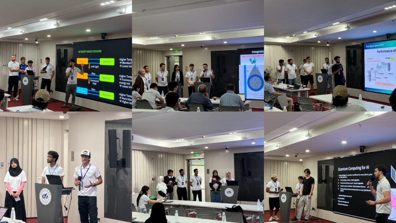 In the academic presentation, participants were divided into six teams for in-depth discussions on cutting-edge topics in AI Photonics. The first team focused on fiber-optic temperature sensing technology and innovatively explored the potential application of Agentic AI in data processing; the second team systematically reviewed the latest research progress and application prospects of integrated photonic chips in environmental monitoring; the third team conducted a comprehensive comparative study on free-space optical (FSO) communication and visible light communication (VLC) technologies, spotlighting large-turbulence compensation algorithms and spatial diversity receivers; the fourth team reported in detail the breakthroughs of photonic computing technology in alleviating the energy crisis of AI, and analyzed and compared the performance advantages of photonic chips and traditional electronic chips; the fifth team discussed the AI-photon structure monitoring system and conducted in-depth research on the collaborative application of distributed fiber-optic sensing technology and LSTM algorithm in infrastructure health monitoring; and the sixth team delved into the field of quantum optics, systematically explaining the preparation principle of frequency entangled photon sources and prospectively exploring their application prospects in quantum communication. These high-quality academic presentations not only demonstrated the participants' profound understanding of the interdisciplinary studies of AI Photonics but also reflected the outstanding achievements of the summer school in cultivating versatile, innovative talent.